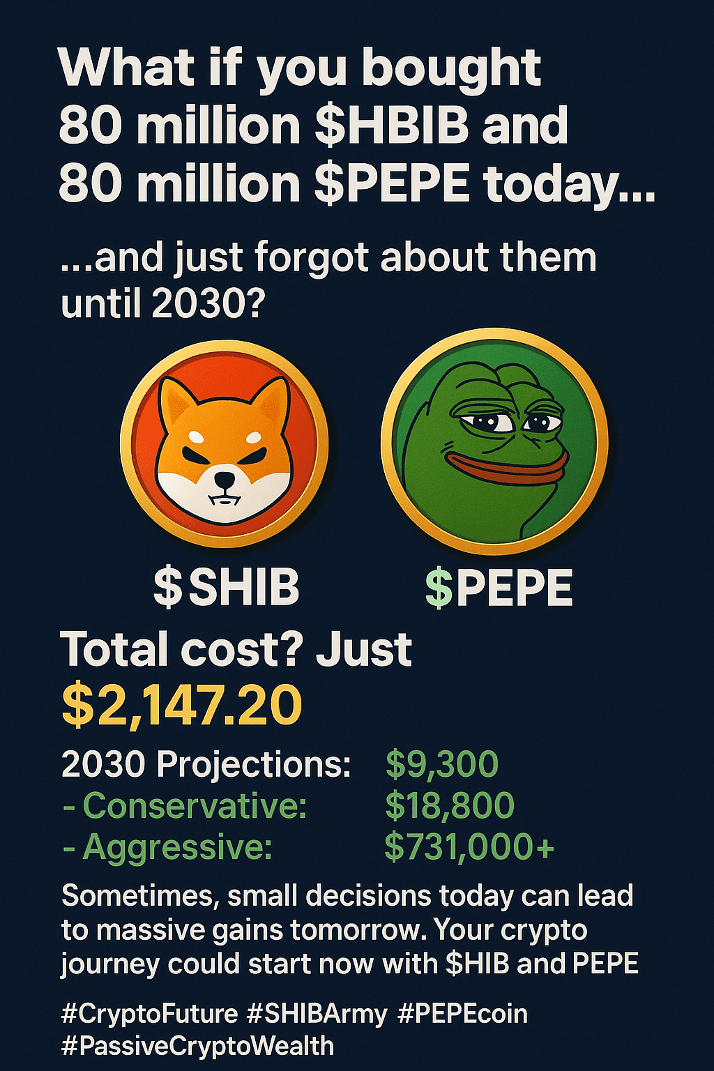 Ce-ar fi dacă ai cumpăra 80 de milioane $SHIB și 80 de milioane $PEPE astăzi — și pur și simplu ai uita de ele până în 2030❓