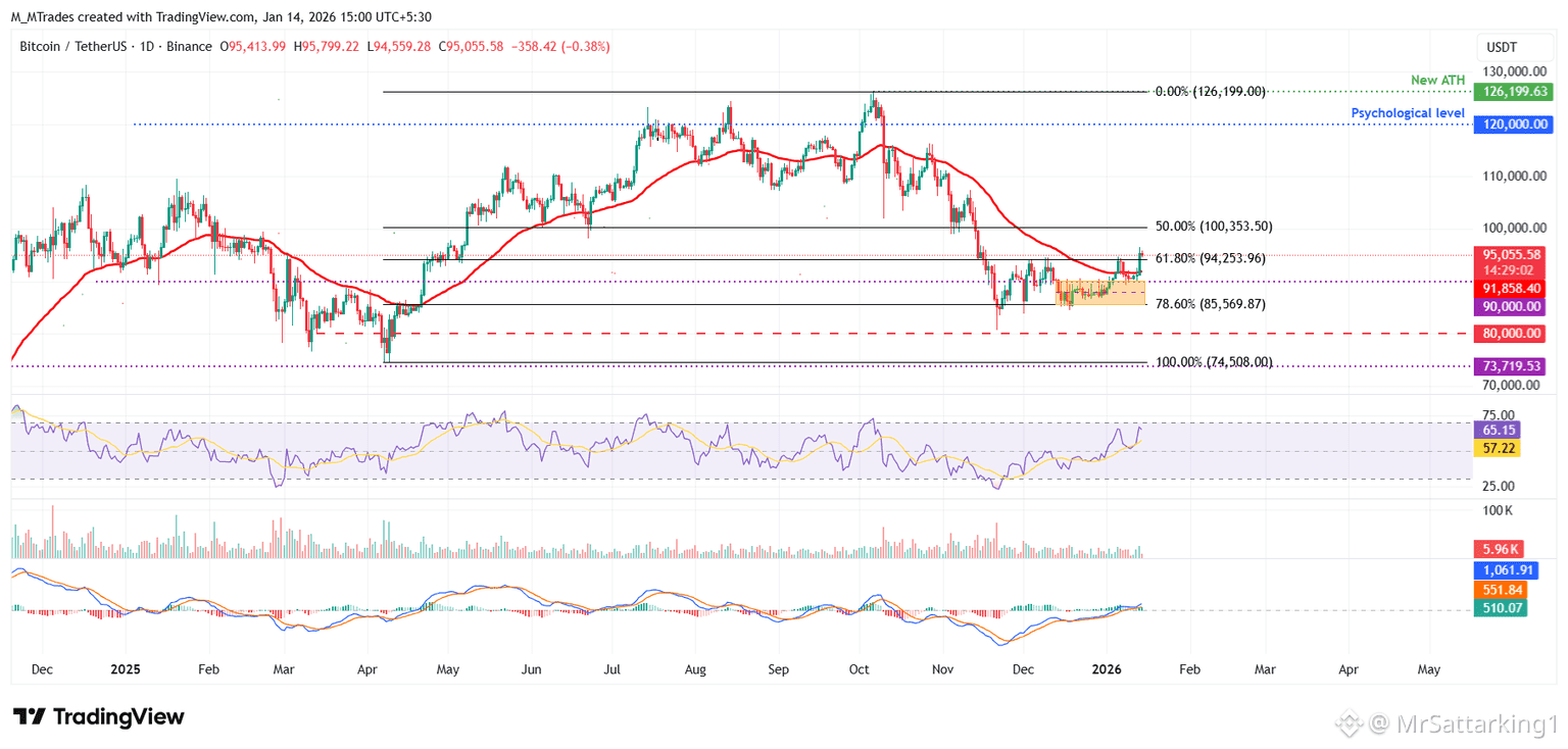 Bitcoin price found support around a previously broken upper consolidation zone at $90,000 on January 8 and recovered slightly through Monday. On Tuesday, BTC rose more than 4% and closed above the 61.8% Fibonacci retracement level (from the April low of $74,508 to October’s all-time high of $126,199) at $94,253. As of Wednesday, BTC is trading around $95,000.