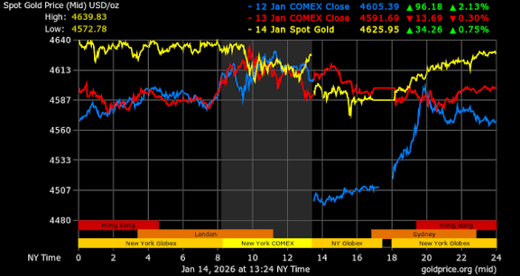 La data de 15 ianuarie 2026, spot XAU/USD se tranzacționează în jur de 4.585–4.600 USD după o scădere ușoară față de noua maximă istorică explozivă de ieri de aproximativ 4.643 USD. Acesta reprezintă un creștere de +6–7% în anul curent deja, urmată de un rally masiv de aproximativ 65–69% în 2025. Suntem într-un mod complet de descoperire a prețului – iar catalizatorii se acumulează rapid!
