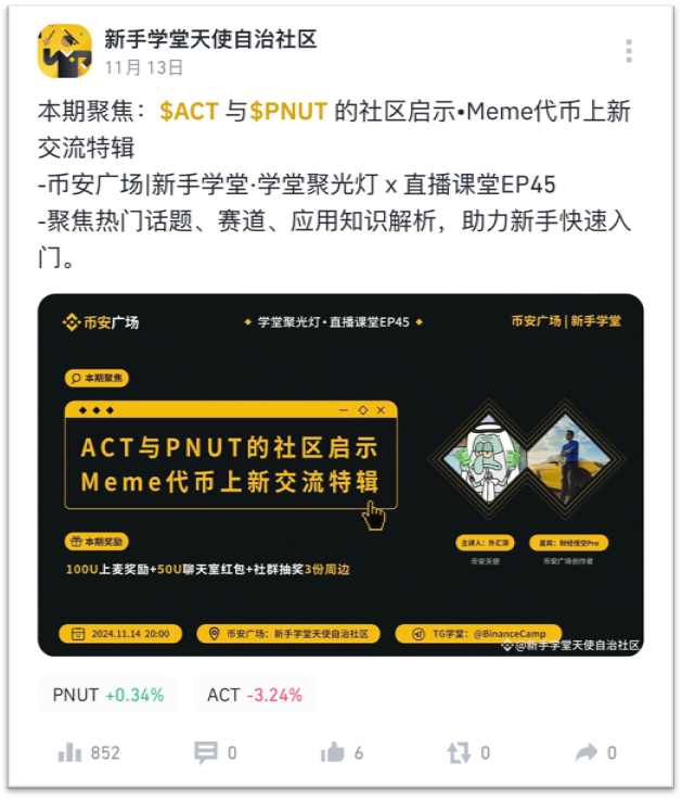 Некоторые официальные мероприятия площадки Binance время от времени проводятся для онлайн-взаимодействия с создателями, участники могут получить значительные награды. Например, @新手学堂天使自治社区
