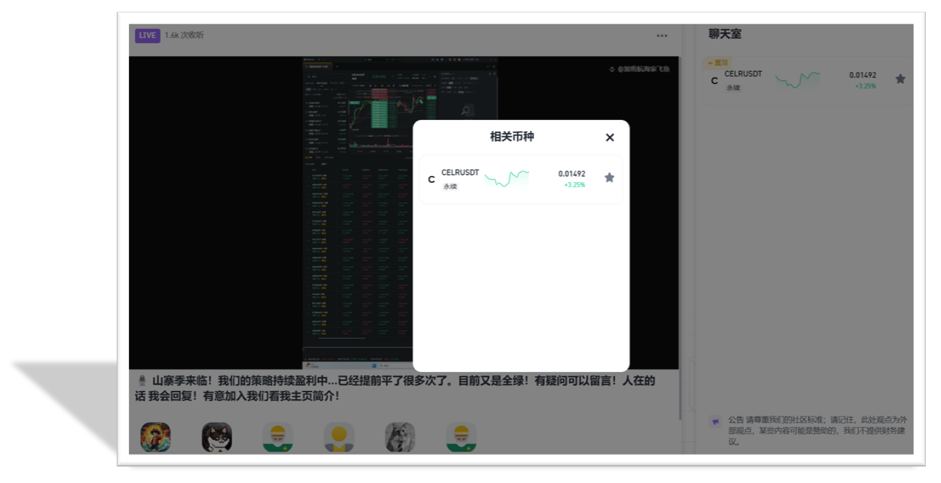 Прямой эфир с рекомендациями: через рекомендации по контрактным токенам и стратегии действий зрители могут выполнить операции через промо-ссылки в прямом эфире, создатель может получать определенный процент от дохода.