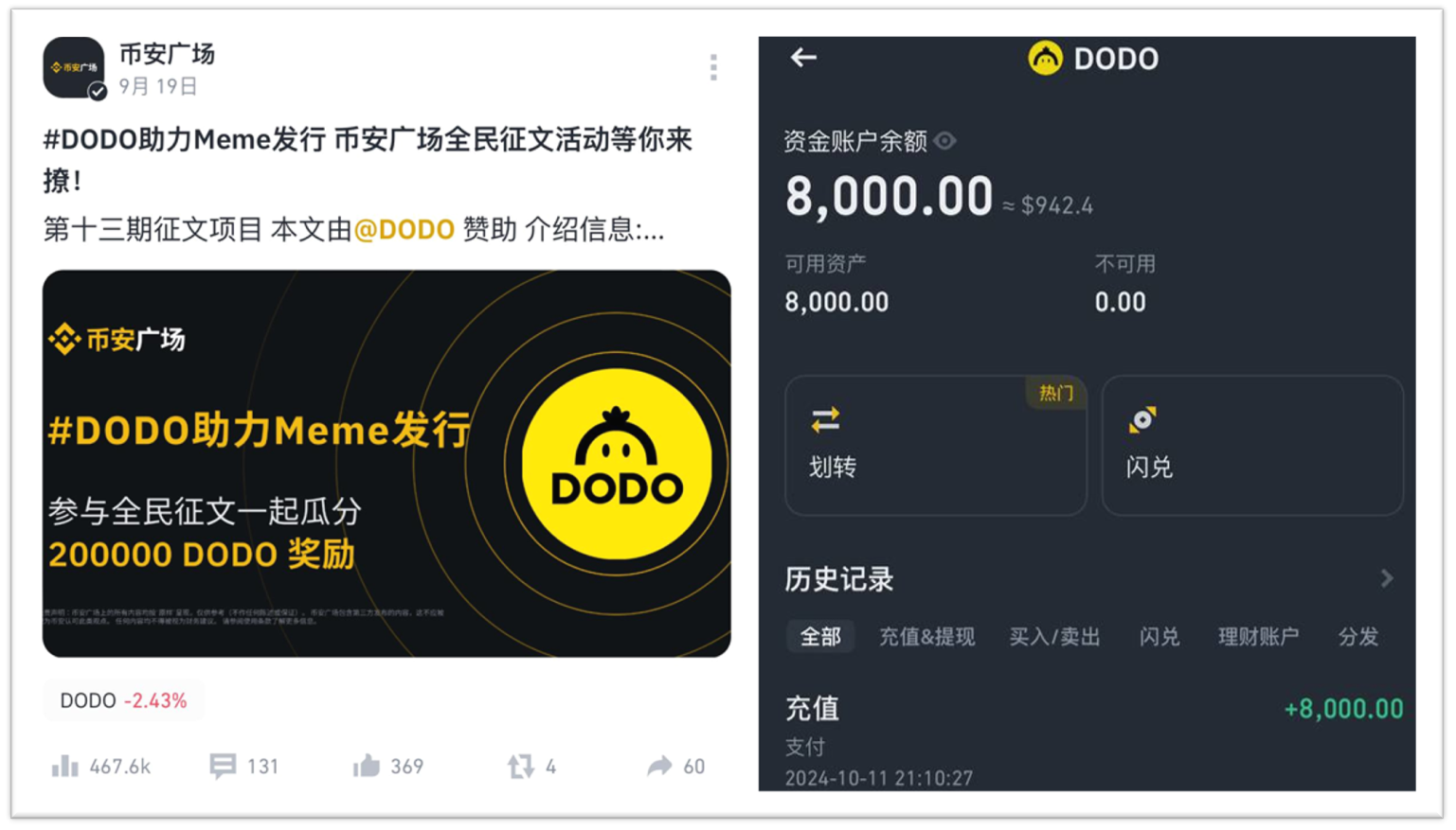 Ниже приведены токены, полученные одним из создателей в сентябрьском конкурсе DODO, почти на сумму 1000 долларов!