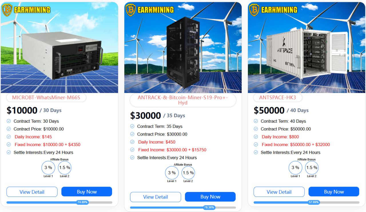 EarnMining предлагает разнообразные выгодные контракты для достижения ваших финансовых целей. Независимо от того, ищете ли вы краткосрочную прибыль или долгосрочный пассивный доход, всегда есть план для вас.