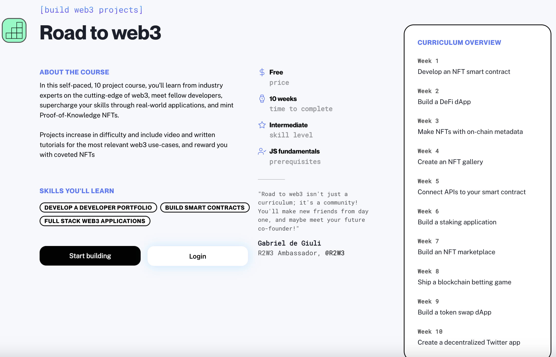 Содержание buildspace относительно разнообразно и не ограничивается смарт-контрактами. Даже машинное обучение, искусственный интеллект и другие многообещающие области входят в сферу его изучения. Однако недостатком является то, что контент немного сложнее и может не подходить для него. те, кто ничего не знает, могут найти такую среду обучения отличной для новичков, обладающих базовыми знаниями в области программирования.