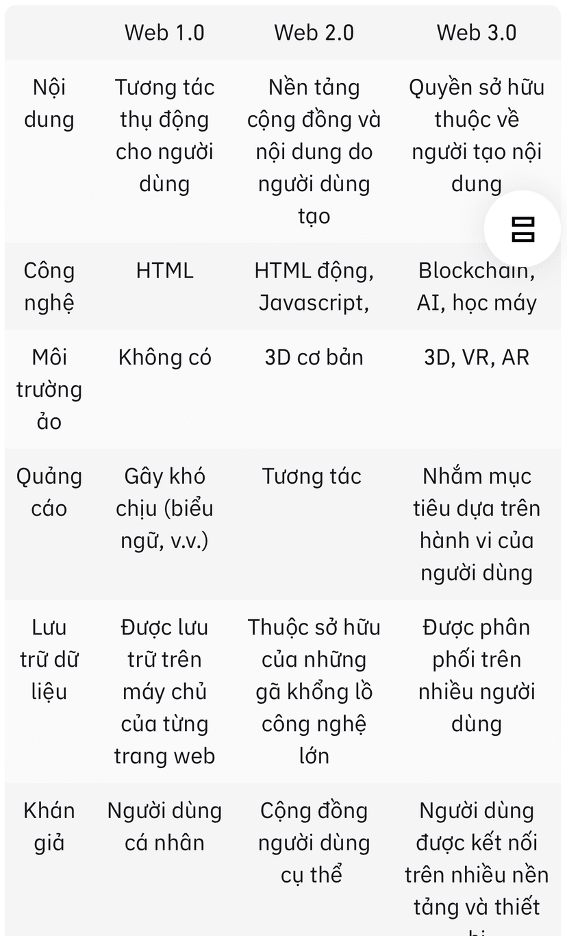 Для быстрого ознакомления с ключевыми различиями между Web 1.0, 2.0 и 3.0 обратитесь к нашей таблице ниже: