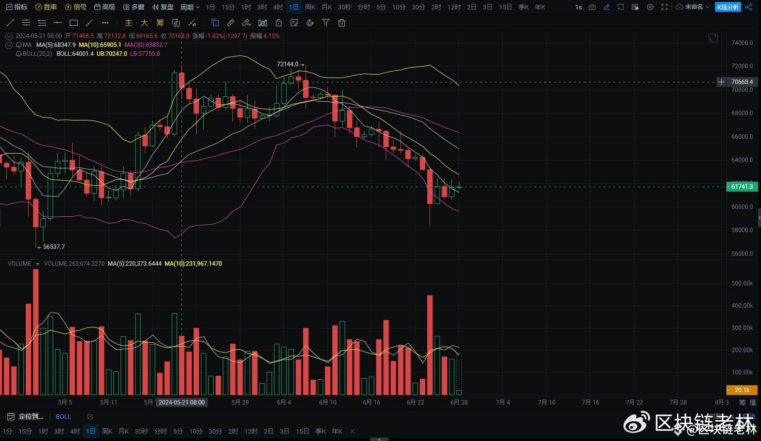 • 底部支撑:60000整数关口。该位置是重要的心理支撑位,若跌破可能引发更大幅度的下跌。