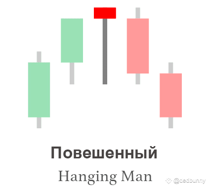 "Повешенный" — это медвежий разворотный паттерн, который появляется на вершине восходящего тренда. Его формация указывает на возможное изменение направления цены с восходящего на нисходящее.