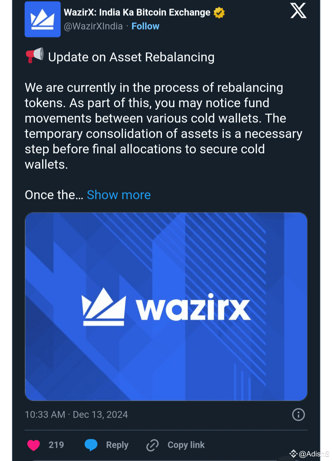 Squashing all the anticipation and brewing all the conspiracy theories, the hacked exchange posted an asset rebalancing reminder. It highlighted that the exchange is in the process of rebalancing tokens. It added that the users might notice fund movement transactions of various cold wallets.
