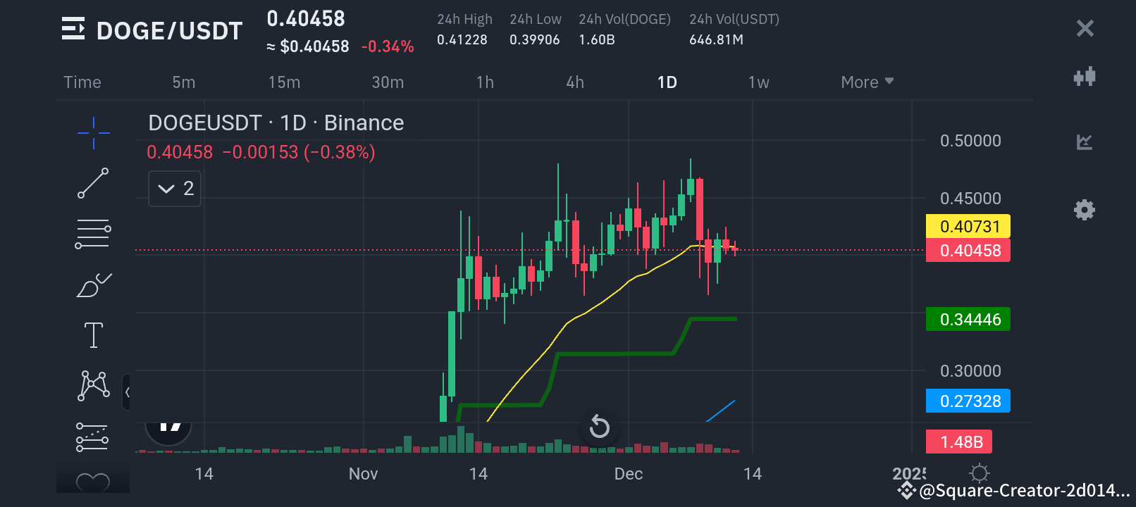 24h Volume: 1.60B DOGE (~$646.81M)