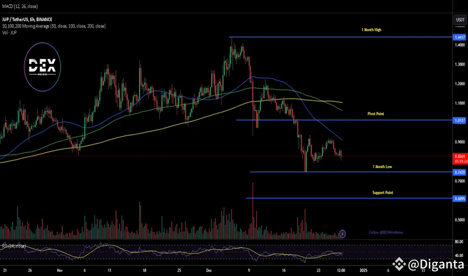 Currently, JUP is trading at $0.81 with a bearish momentum. A potential dip towards its 1-month low of $0.74 is possible, given the current market conditions.
