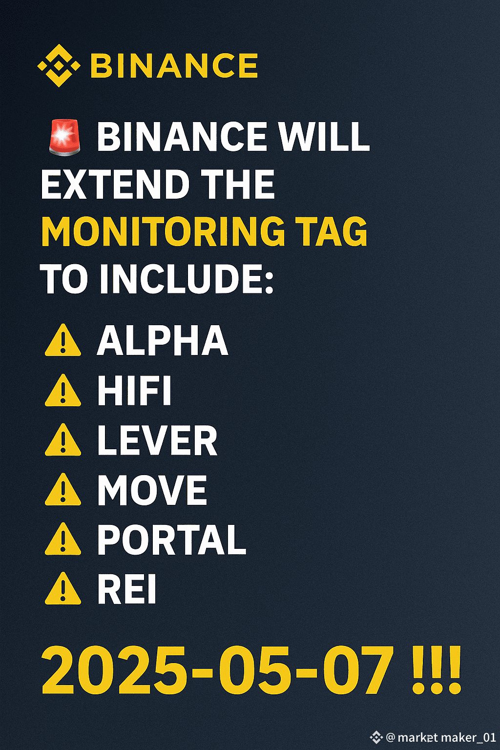 Hold tight, crypto fam! Binance is turning up the heat with its latest update! Starting May 7, 2025, the following tokens are getting tagged with the Monitoring Tag: