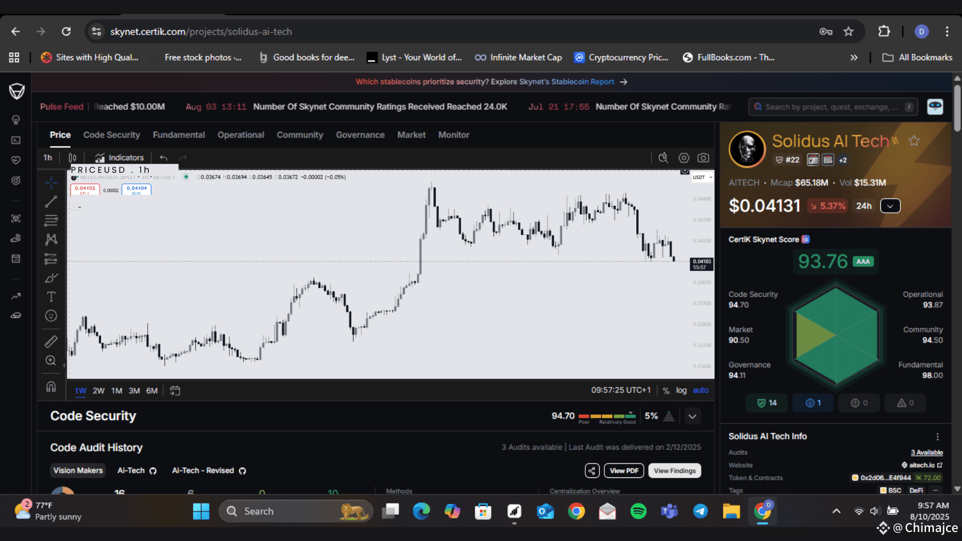 Solidus AI Tech ($AITECH ) has secured a major win, earning top positions on CertiK’s global rankings with a AAA security rating and a 93.78 Skynet score. This achievement reinforces $AITECH’s role as a trusted force in AI, DePIN, and blockchain infrastructure.