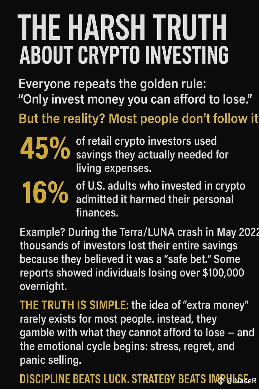 👉 The truth is simple: the idea of “extra money” rarely exists for most people. Instead, they gamble with what they cannot afford to lose — and the emotional cycle begins: stress, regret, and panic selling.