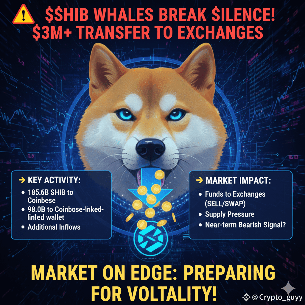 $SHIB whales just moved over $3 million worth of Shiba Inu to exchanges, breaking a period of low activity. This includes large transfers to Coinbase. This isn't usually a good sign for short-term prices as it suggests they might be preparing to sell or trade, putting pressure on the supply. While it makes the market nervous, it also shows that SHIB is still active among big investors.