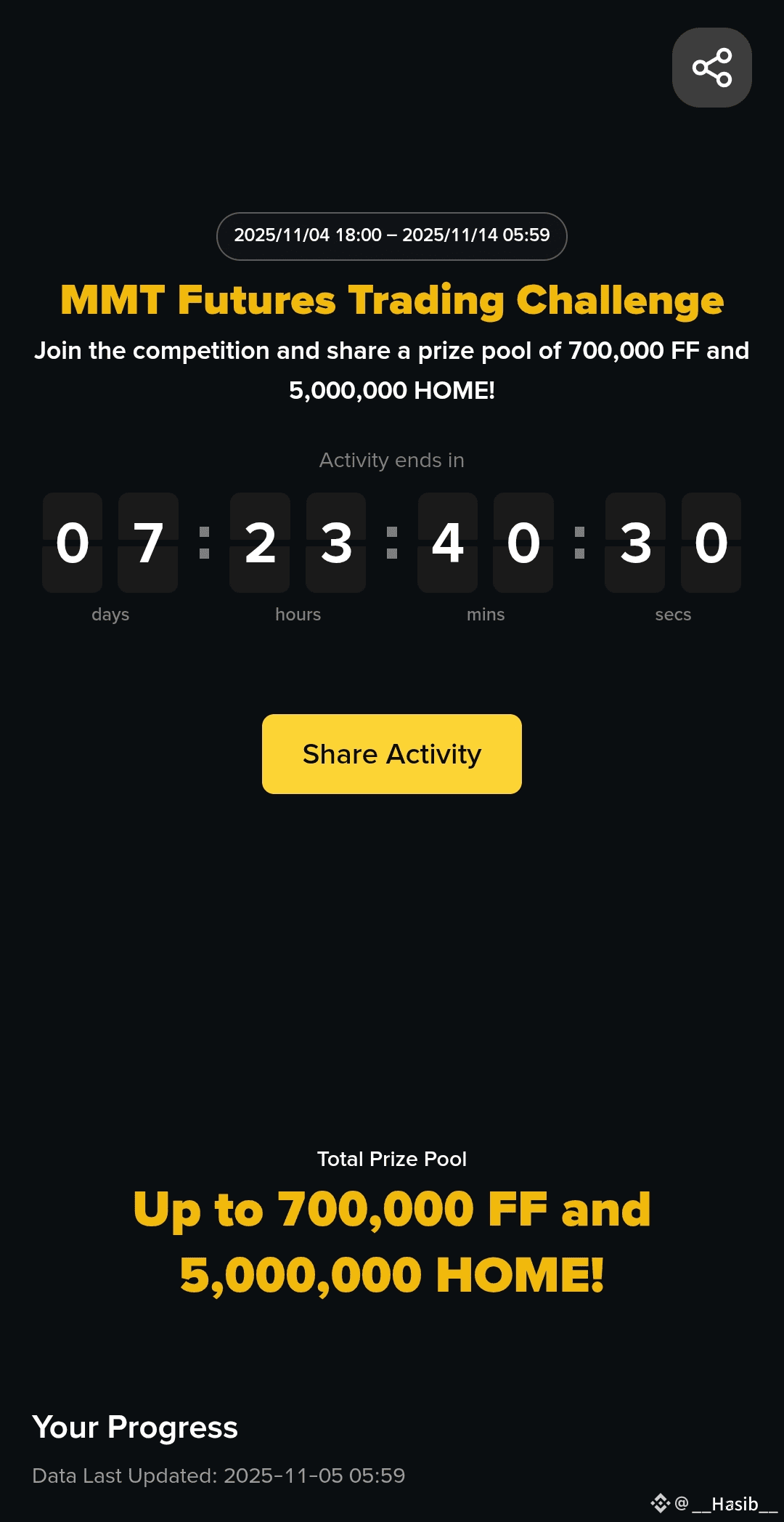 Hey everyone! I’m excited to share that **Binance Futures** has just launched an amazing event — the **MMT Futures Trading Challenge**, running from **November 4, 2025 (12:00 UTC)** to **November 13, 2025 (23:59 UTC)**. This is a great opportunity for traders to compete, boost their trading volume, and earn rewards from a massive **prize pool of up to 700,000 FF and 5,000,000 HOME token vouchers!**