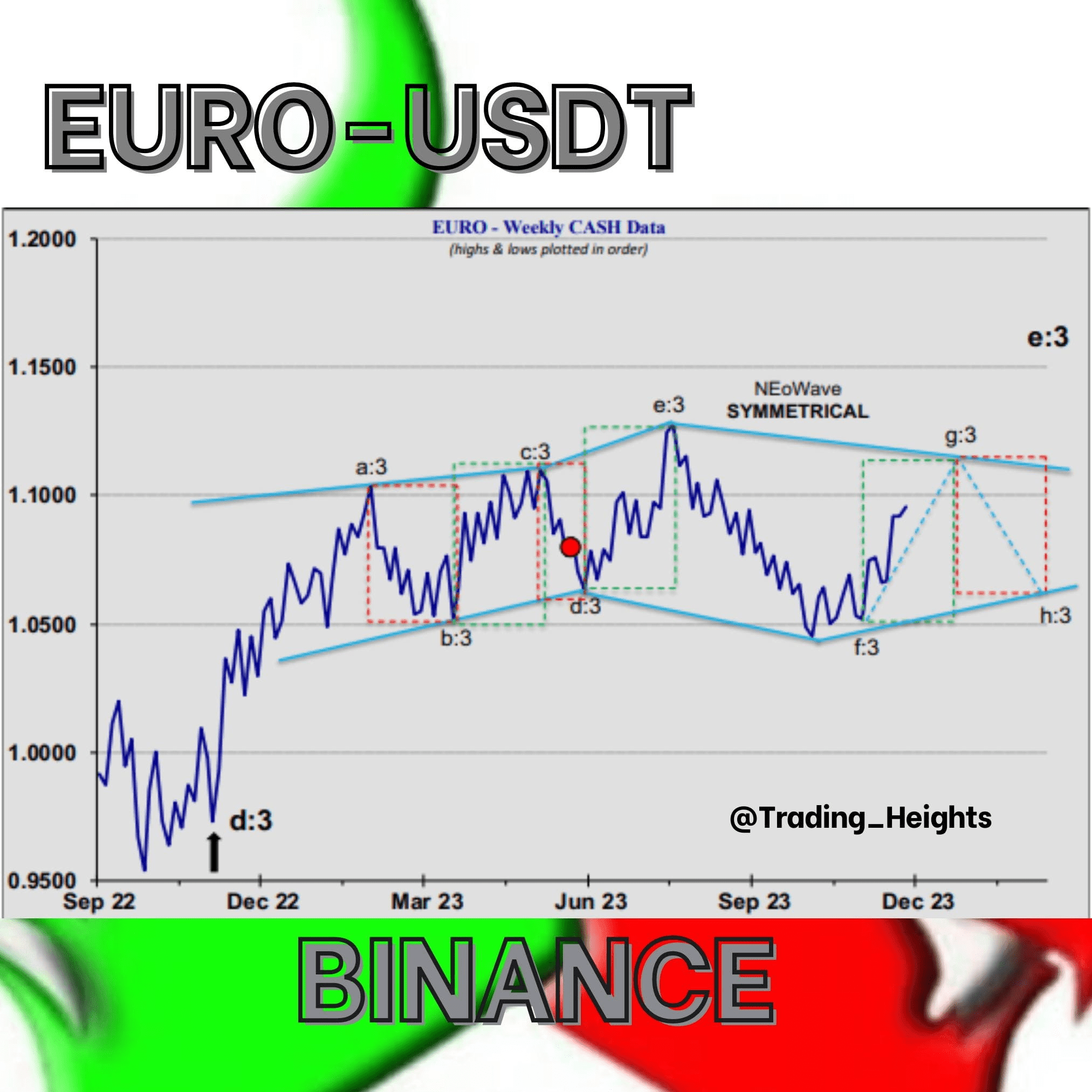 As we conclude this NeoWave-infused analysis, the symmetrical journey of the EURO-USDT pair unfolds as a guiding light for traders and investors. The completion of the F wave and the imminent G wave present a compelling narrative. Prudent consideration is advised as H and I waves await their turn, inviting a cautious yet optimistic outlook.