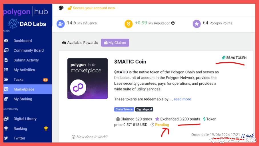 Look, you can see it below. I was able to get 55 MATICs with my 3200 points.