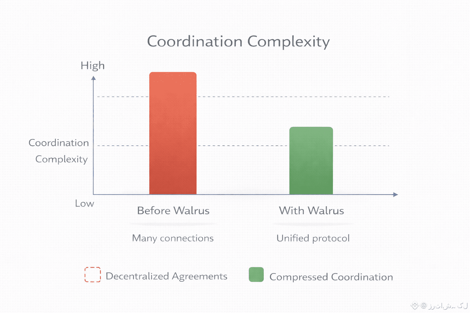Large decentralized systems usually fail not because of technology, but because coordination becomes too complex. Every application that manages its own storage providers, verification rules, and redundancy strategies has to solve the same organizational problem again and again. Walrus can be viewed as a way to compress this complexity into a shared protocol.
