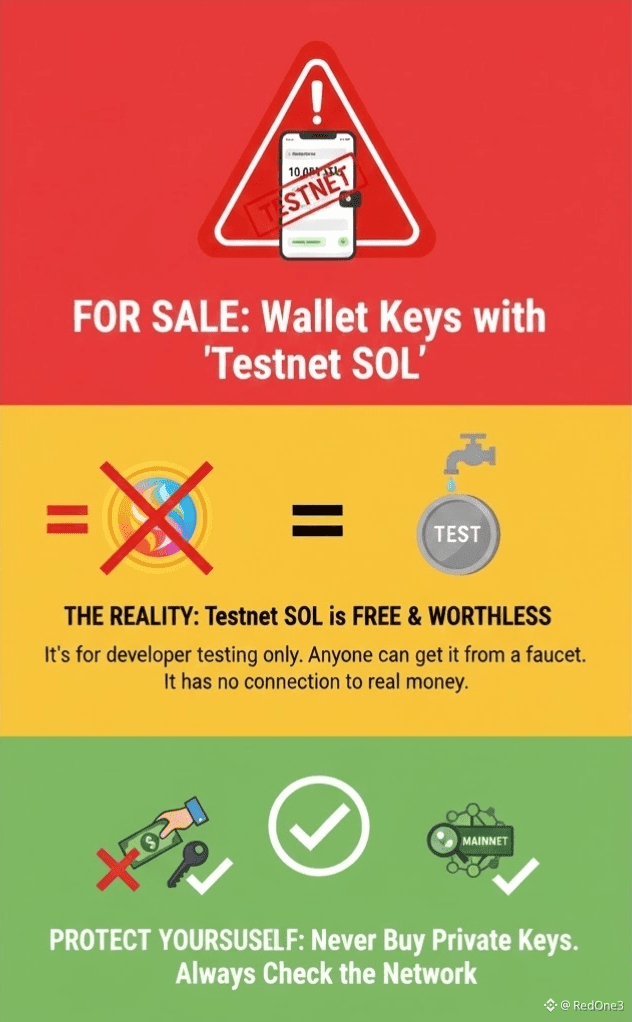 These are separate, public testing environments where developers experiment with applications. The SOL on these networks is freely available from faucets and holds zero monetary value. It cannot be transferred or used on the real, valuable Solana Mainnet. The scammer simply creates wallets on this free test network, funds them with worthless test coins, and sells the access credentials.