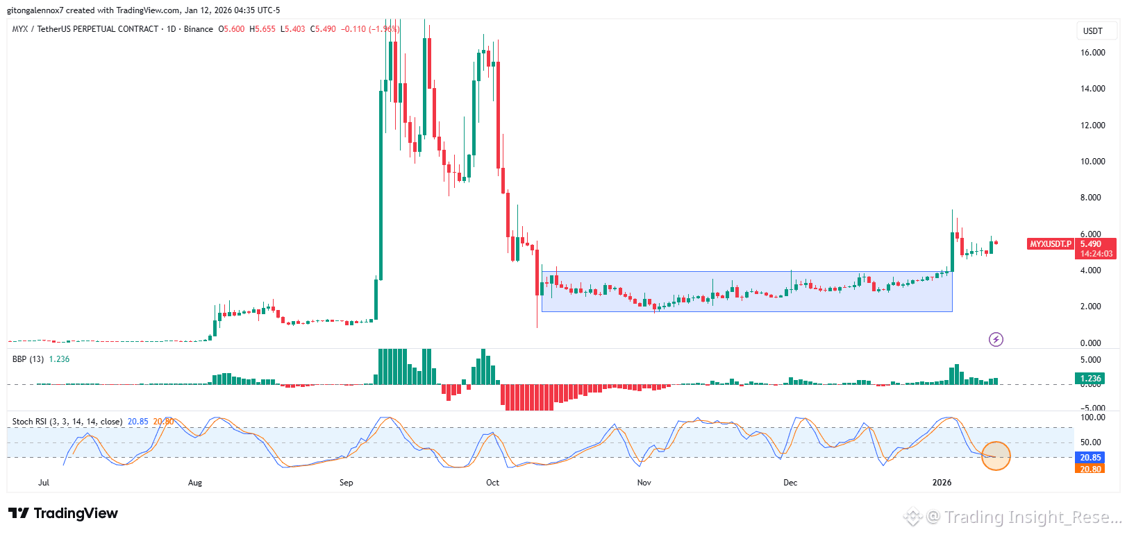 🔹 MYX hoàn toàn là một trò chơi sử dụng đòn bẩy. Lượng người dùng (1,6 triệu người) là có, nhưng niềm tin để nắm giữ giao dịch giao ngay thì không. Giao dịch rất đơn giản Mua vào khi giá ở mức $4,00, nhắm mục tiêu $9,00. Nếu $4,00 bị phá vỡ, sự phân kỳ cho thấy một đợt giảm giá nhanh chóng khi các trader vĩnh cửu giảm rủi ro.
