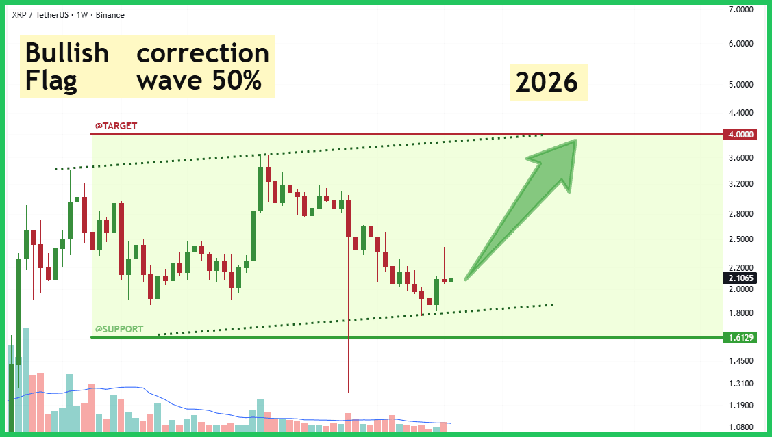 Biểu đồ rõ ràng cho thấy $XRP đang tích lũy trong một mô hình cờ Bullish kinh điển sau đợt tăng mạnh ban đầu. Chúng tôi đã quan sát thấy một lần kiểm tra và bật tăng quan trọng gần vùng hỗ trợ kênh dưới tại $1.61. Trong khi cấu trúc cờ này vẫn giữ vững, xu hướng dễ dàng nhất là đi lên. Khu vực quan tâm ngay lập tức là phạm vi giá hiện tại ($2.1065). Một đợt bứt phá thành công vượt qua ranh giới trên sẽ cho thấy sự tăng tốc hướng tới mục tiêu kháng cự tâm lý và lịch sử cuối cùng là $4.00.